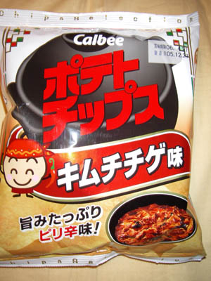 カルビーのポテトチップス キムチチゲ味。ここいらへん
