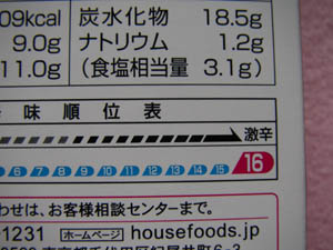 ハウスのカレーなので、辛さメーターがあるのですが。