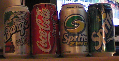 左からルートビア(ビアと言ってもアルコール飲料ではない。ググルといっぱい出てくる。)チェリーコークスプライトゼロスプライト(スプライトIceかもしれない)