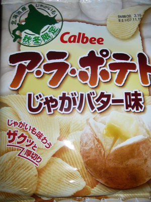 美味しかったんだけど、食べてるときにちょっとした疑問が。バター味じゃダメなんだろうか?カールとかのコーン系スナックなら「じゃがバター味」もわかるけど、ジャガイモのスナックがじゃが味なのは当たり前なわけで・・