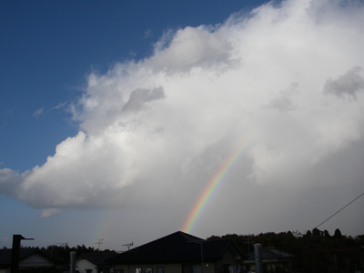 急に雨が降ってきて、洗濯物取り込んでたら虹が見えました。もっとハッキリクッキリ見えてたんだけど、洗濯取り込んでカメラ用意してる間に薄くなちゃった…見にくいけど、二重になってます。
