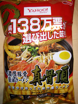 日本中が待ってたラーメンらしいけど、コーンスナックだし・・ラーメン自体は、「ラーメン花月」で食べられる他、カップメンでも出てるらしい。詳しくはここ。